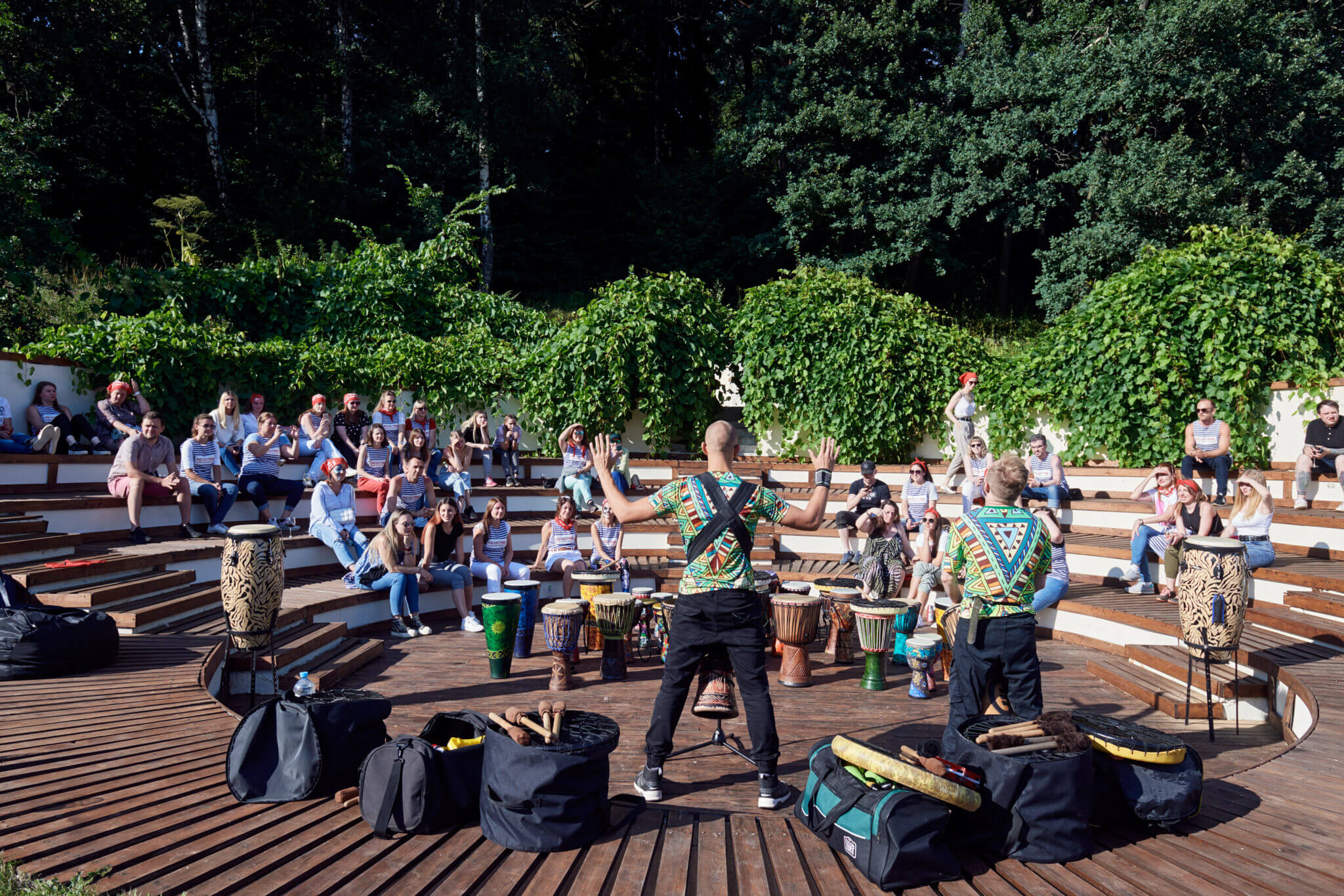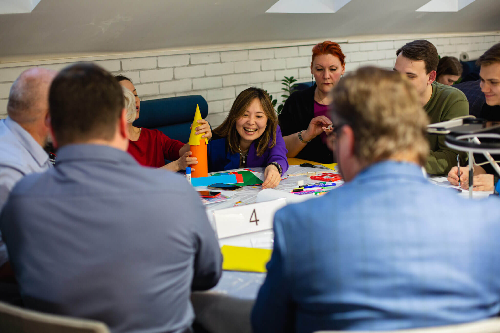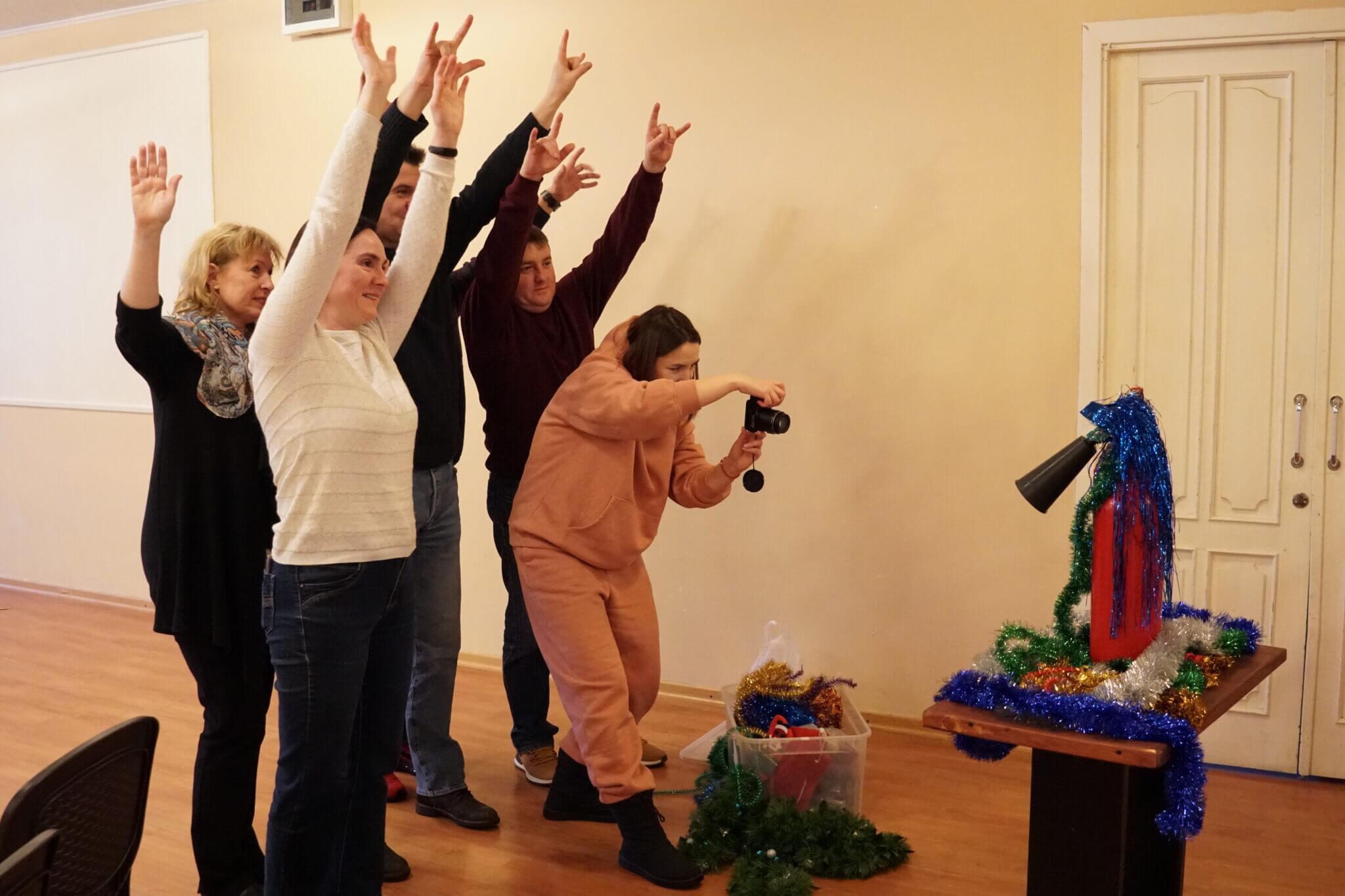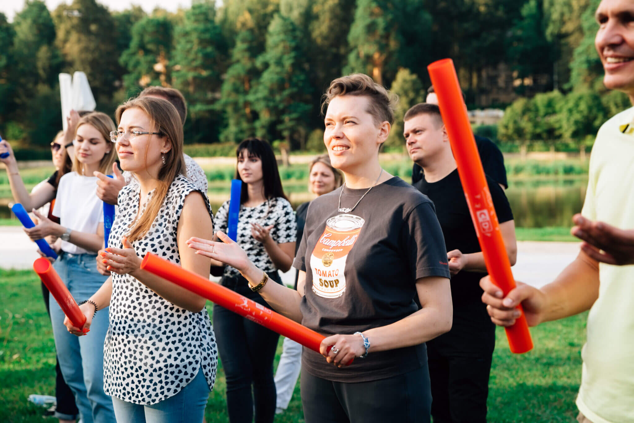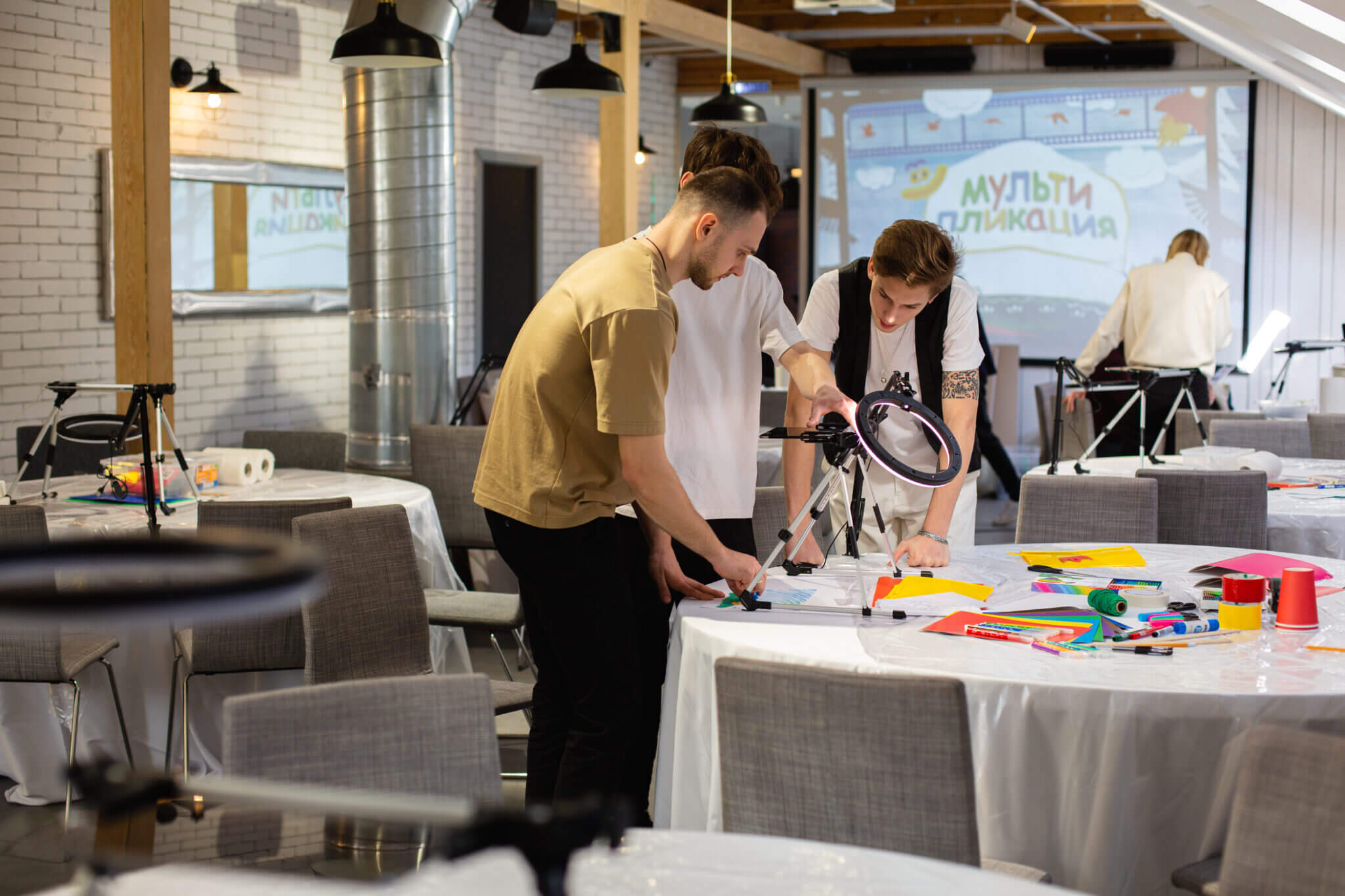 Для праздника мы выбрали тему дня — художественная галерея. Стены были украшены портретами сотрудниц, потолок — шарами, а на столах женскую часть коллектива ожидали краски. Мы разделили дам на 15 команд и выдали по фрагменту, который им нужно было воспроизвести на своих полотнах. Через полтора часа у на
